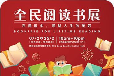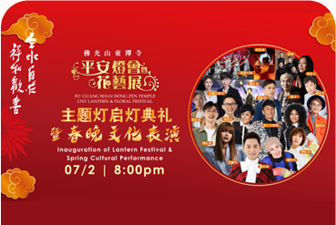 雲水自在樂融融 主題燈啟燈典禮暨春晚文化表演 主題燈區 07/2,8pm [觀賞Youtube] 雲水自在樂融融 全民閱讀書展 修持中心 07/2~25/2, 10am~10pm 雲水自在樂融融 滴水坊素食廣場 佛光廣場 07/2, 8:00pm 雲水自在樂融融 情係背兒帶-鍾瑜木刻版畫展 佛光缘美術館東禪館 03/2(六)~07/4(日)10am~10pm 雲水自在樂融融 畫墨為光-鄭泰均當代禪畫展 佛光缘美術館東禪館 07/2(三)~14/4(日)10am~10pm 雲水自在樂融融 東禪教育展 東禪佛教學院 07/2(三)~25/2(日)10am~10pm